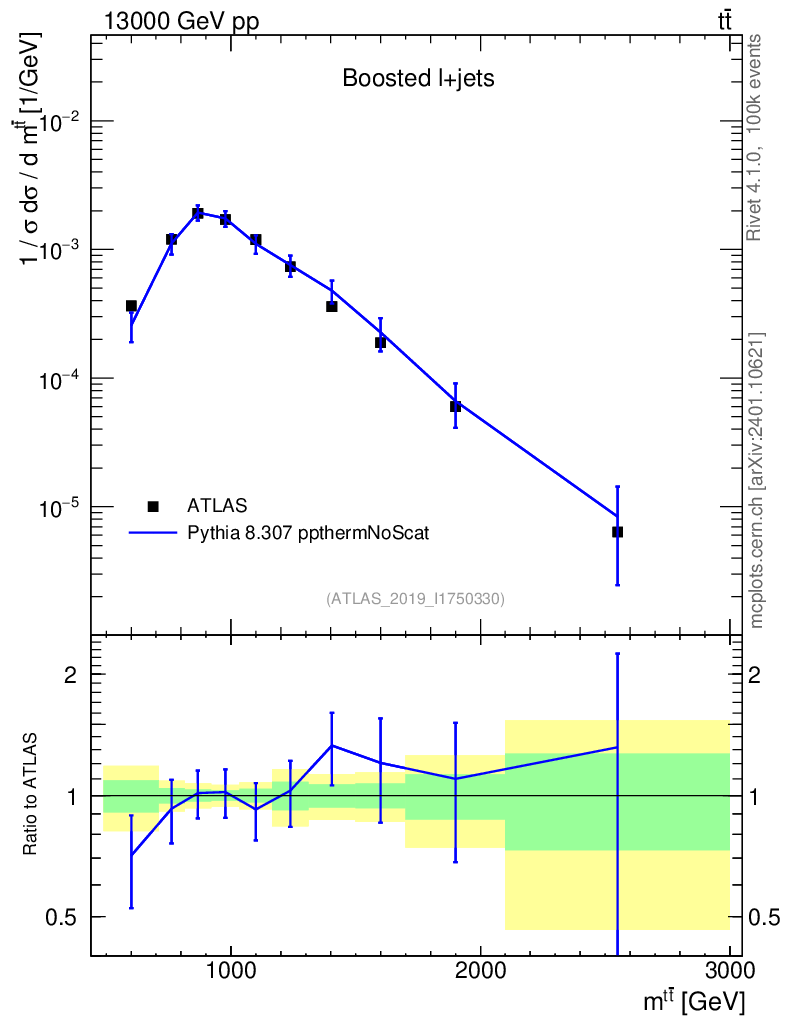 Lines: data, pythia8 8.307 ppthermNoScat |