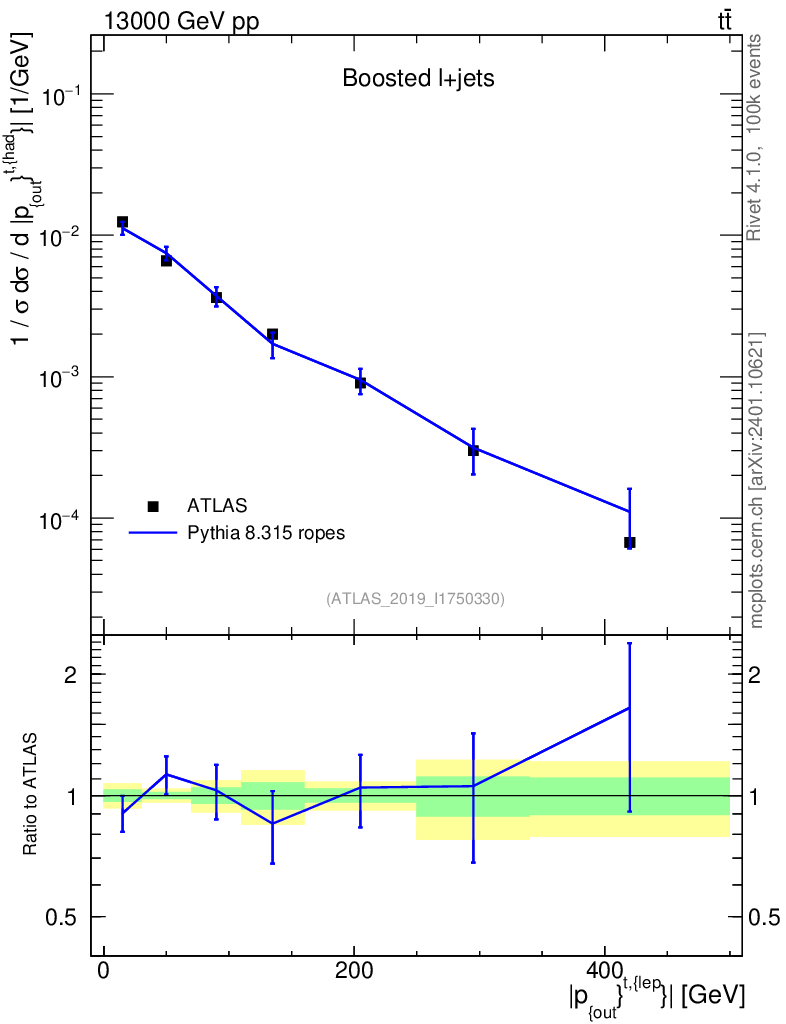 Lines: data, pythia8 8.315 ropes |