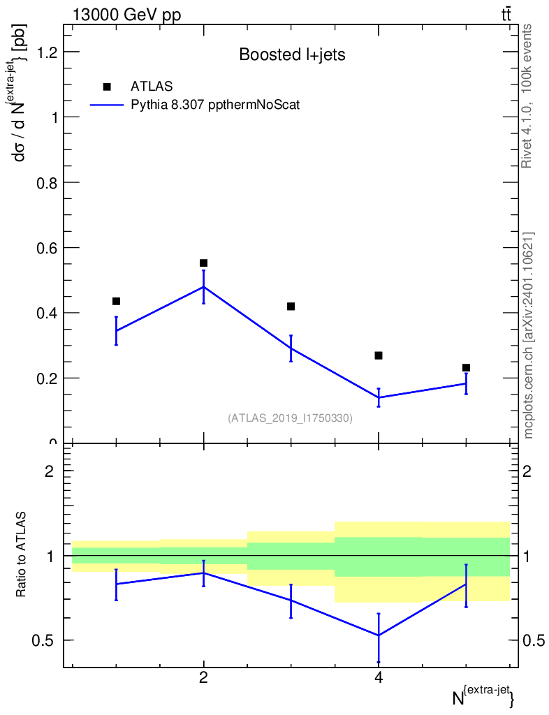 Lines: data, pythia8 8.307 ppthermNoScat |