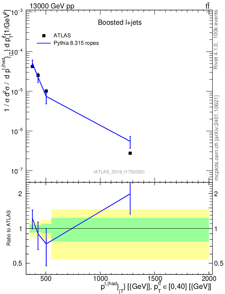 Lines: data, pythia8 8.315 ropes |