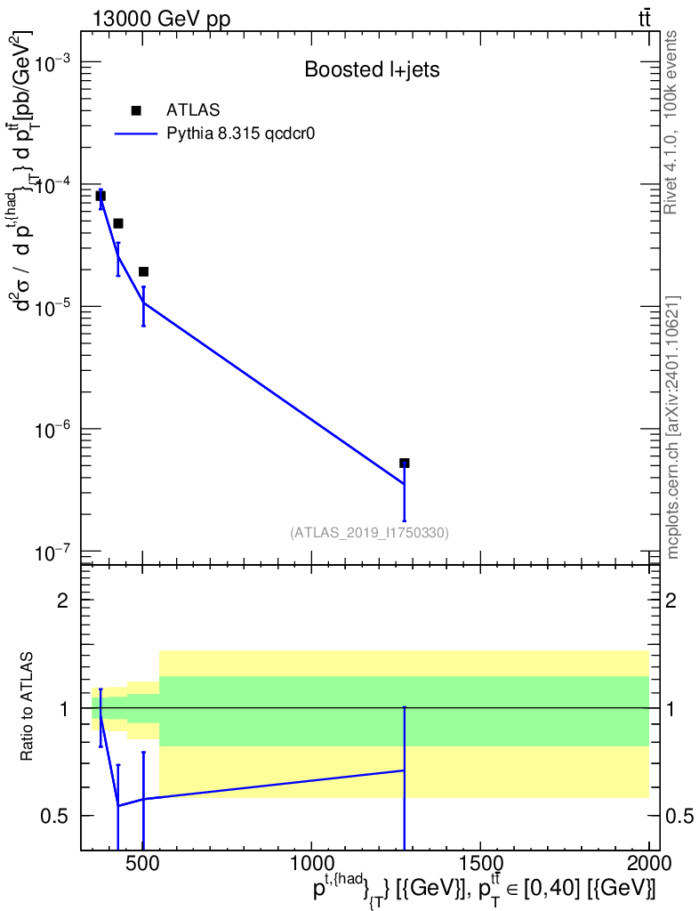 Lines: data, pythia8 8.315 qcdcr0 |
