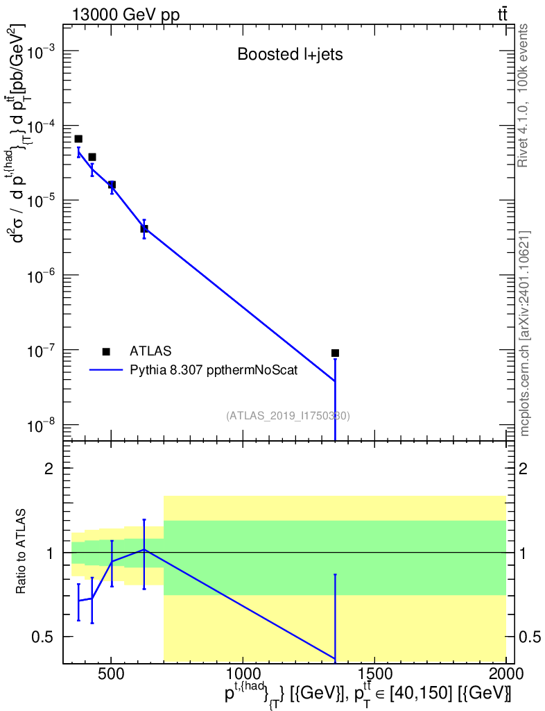 Lines: data, pythia8 8.307 ppthermNoScat |