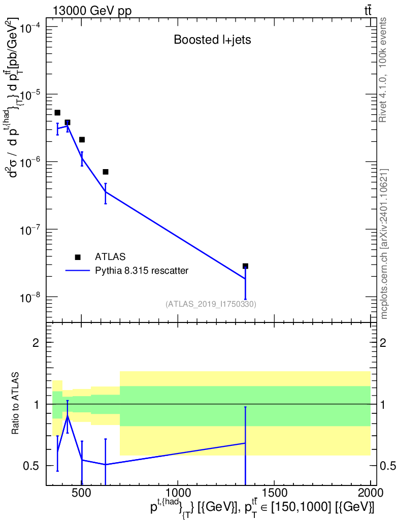 Lines: data, pythia8 8.315 rescatter |