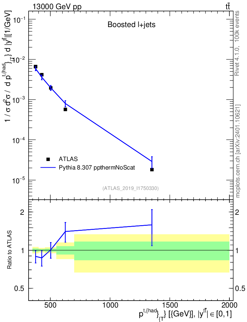 Lines: data, pythia8 8.307 ppthermNoScat |