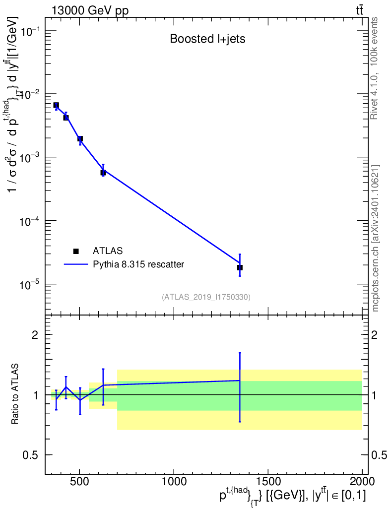 Lines: data, pythia8 8.315 rescatter |