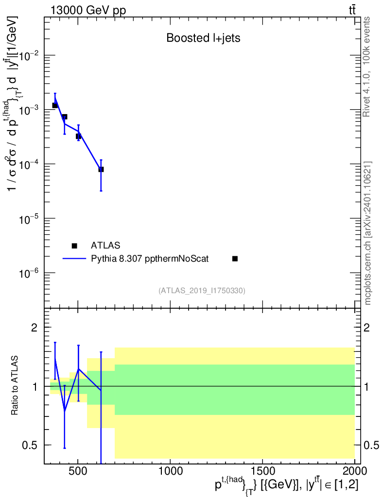 Lines: data, pythia8 8.307 ppthermNoScat |