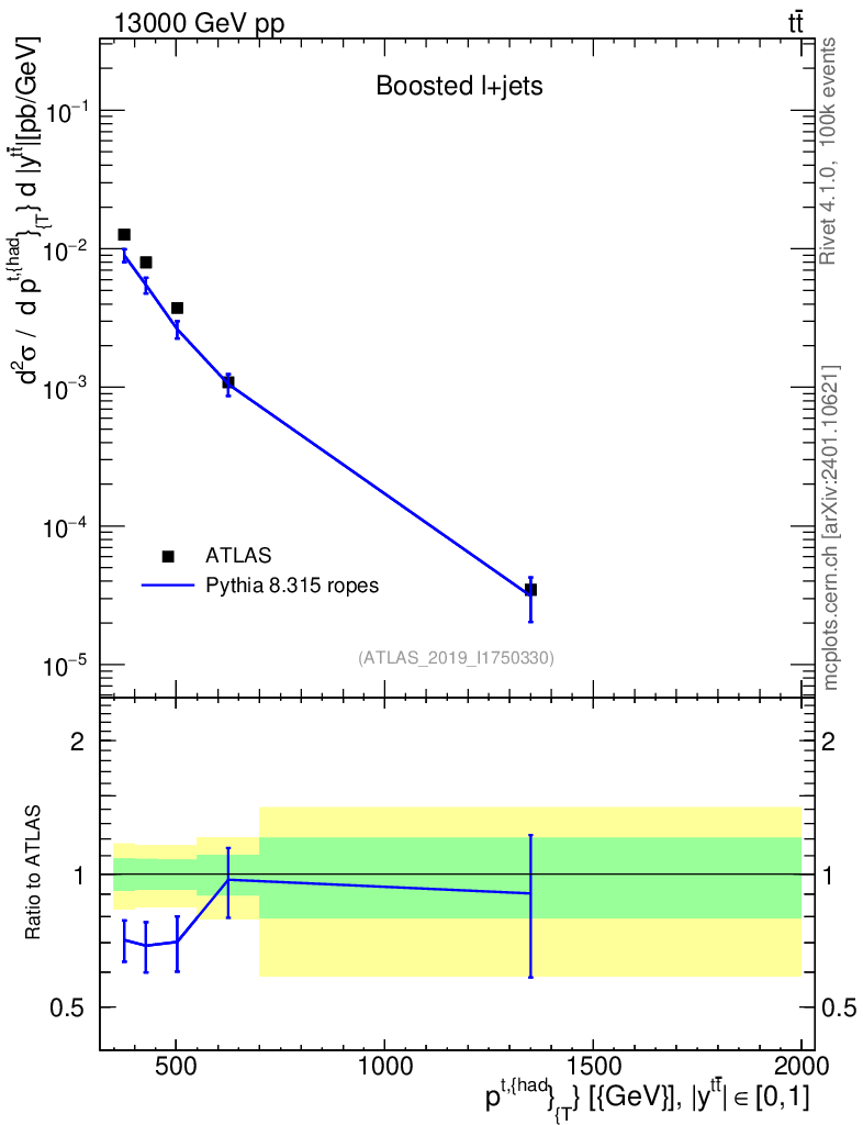 Lines: data, pythia8 8.315 ropes |