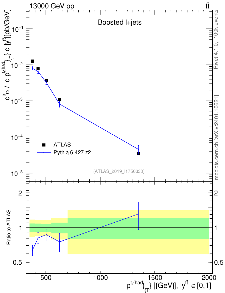 Lines: data, pythia6 6.427 z2 |