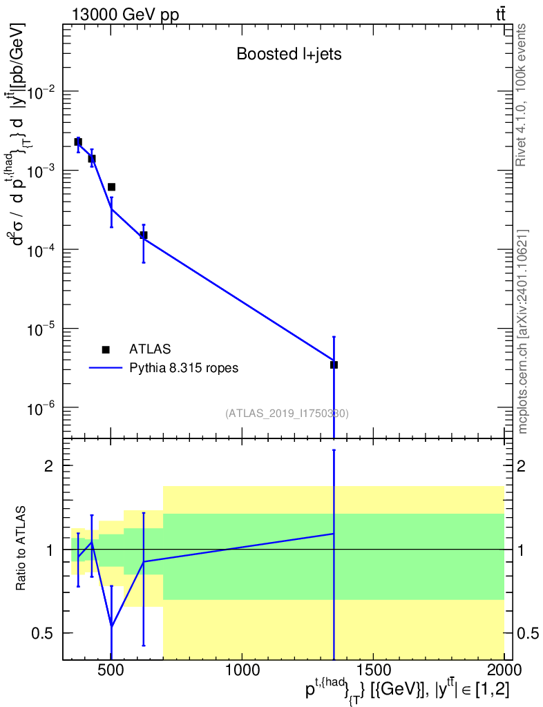 Lines: data, pythia8 8.315 ropes |