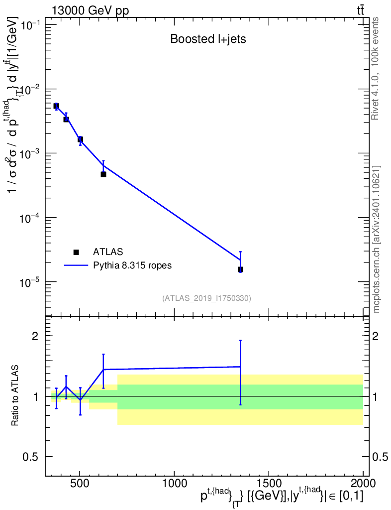 Lines: data, pythia8 8.315 ropes |