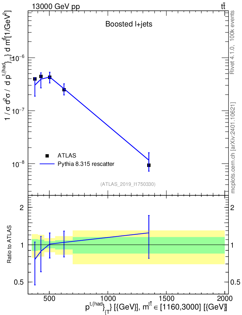 Lines: data, pythia8 8.315 rescatter |