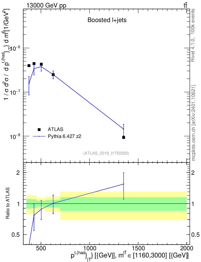 Lines: data, pythia6 6.427 z2 |