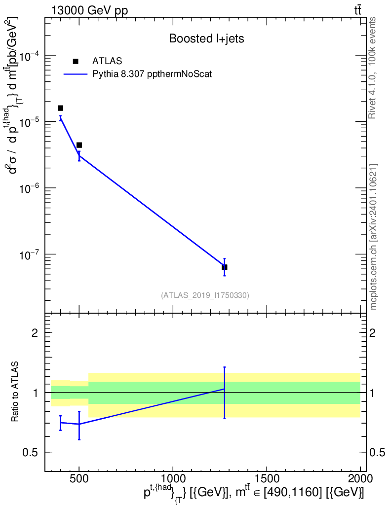 Lines: data, pythia8 8.307 ppthermNoScat |