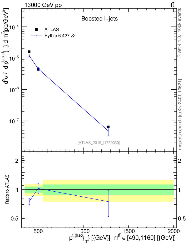 Lines: data, pythia6 6.427 z2 |