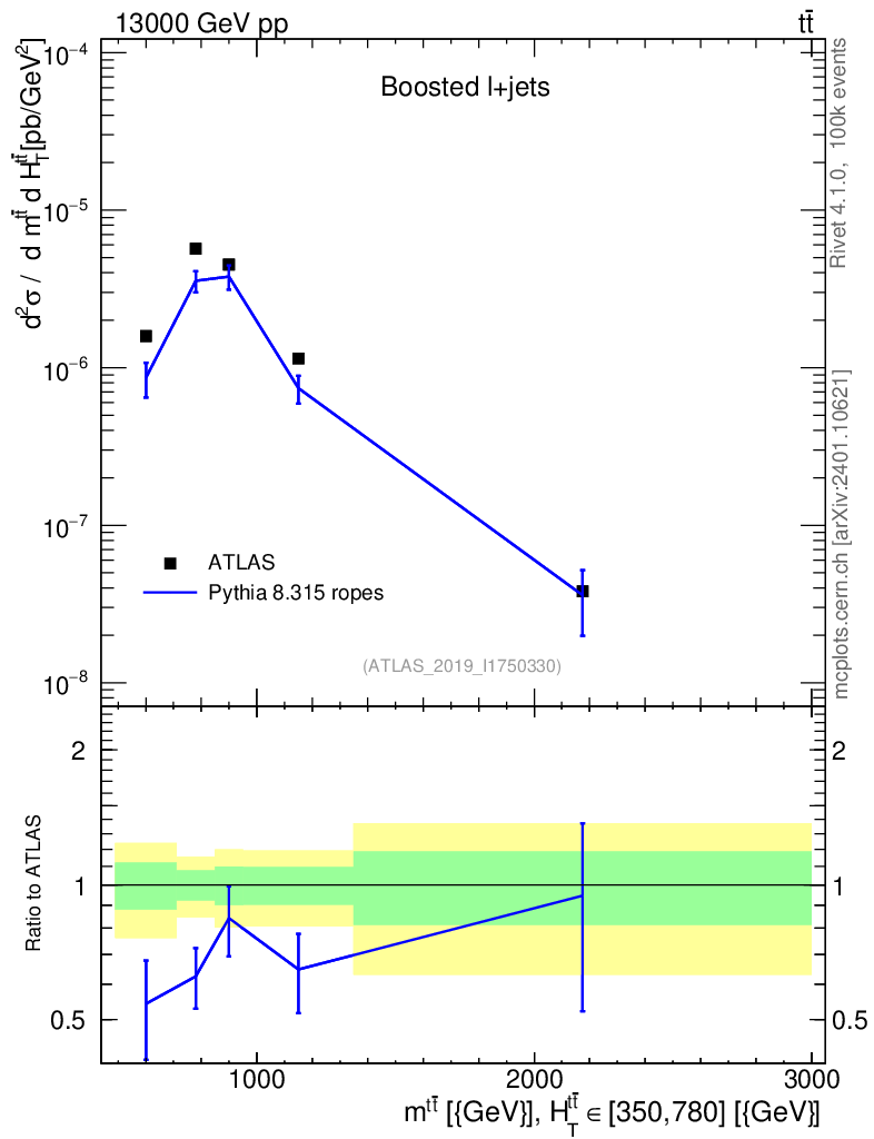 Lines: data, pythia8 8.315 ropes |