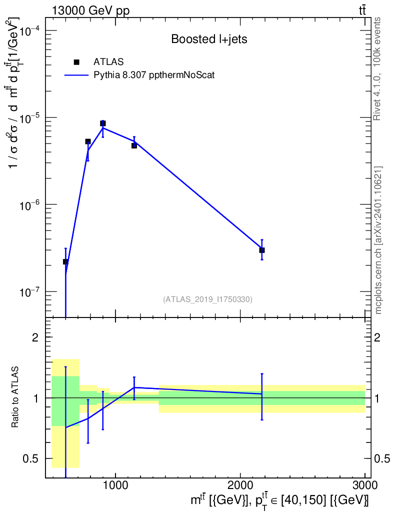 Lines: data, pythia8 8.307 ppthermNoScat |
