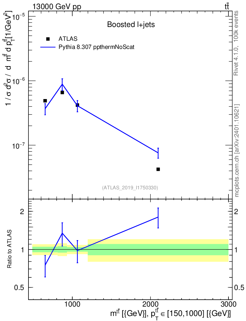 Lines: data, pythia8 8.307 ppthermNoScat |
