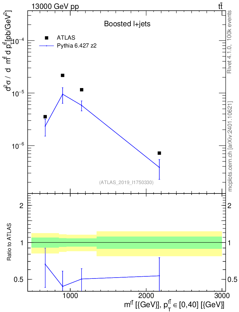 Lines: data, pythia6 6.427 z2 |