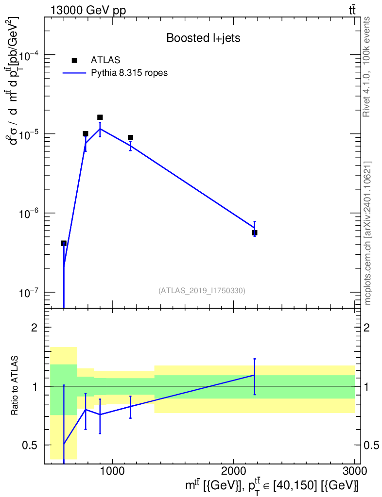 Lines: data, pythia8 8.315 ropes |