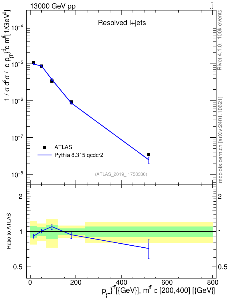 Lines: data, pythia8 8.315 qcdcr2 |