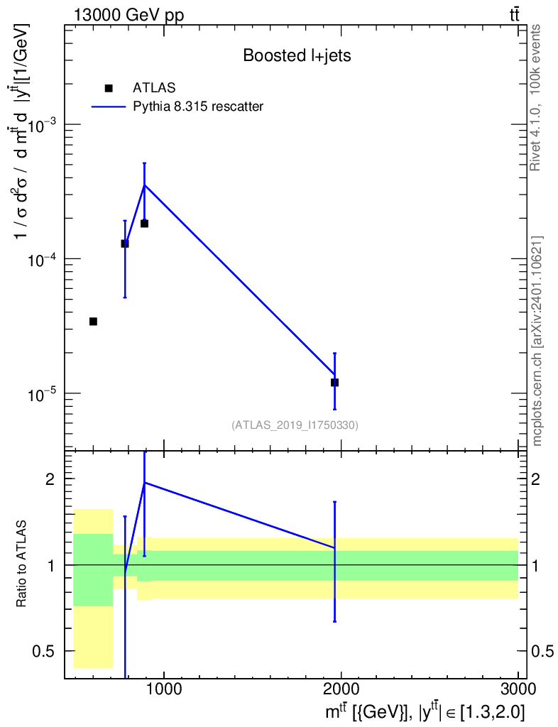 Lines: data, pythia8 8.315 rescatter |