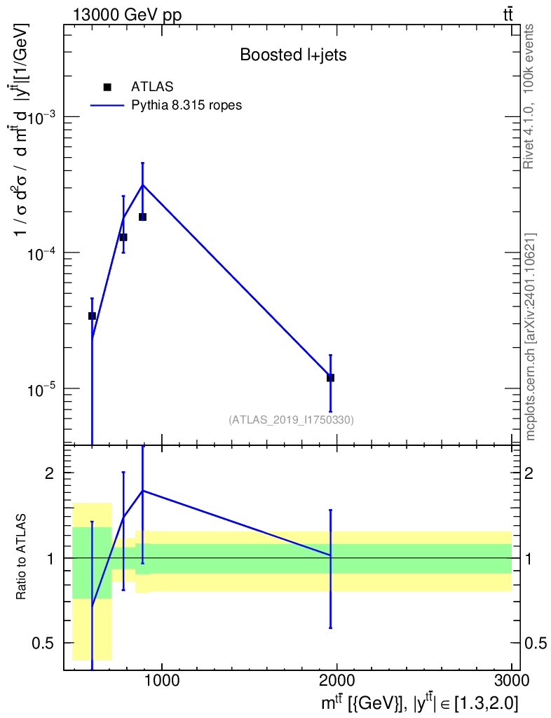 Lines: data, pythia8 8.315 ropes |