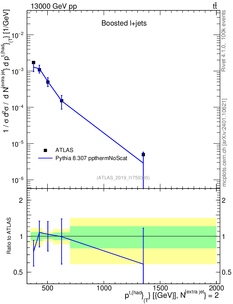 Lines: data, pythia8 8.307 ppthermNoScat |