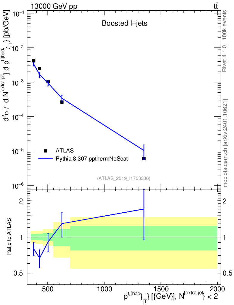 Lines: data, pythia8 8.307 ppthermNoScat |