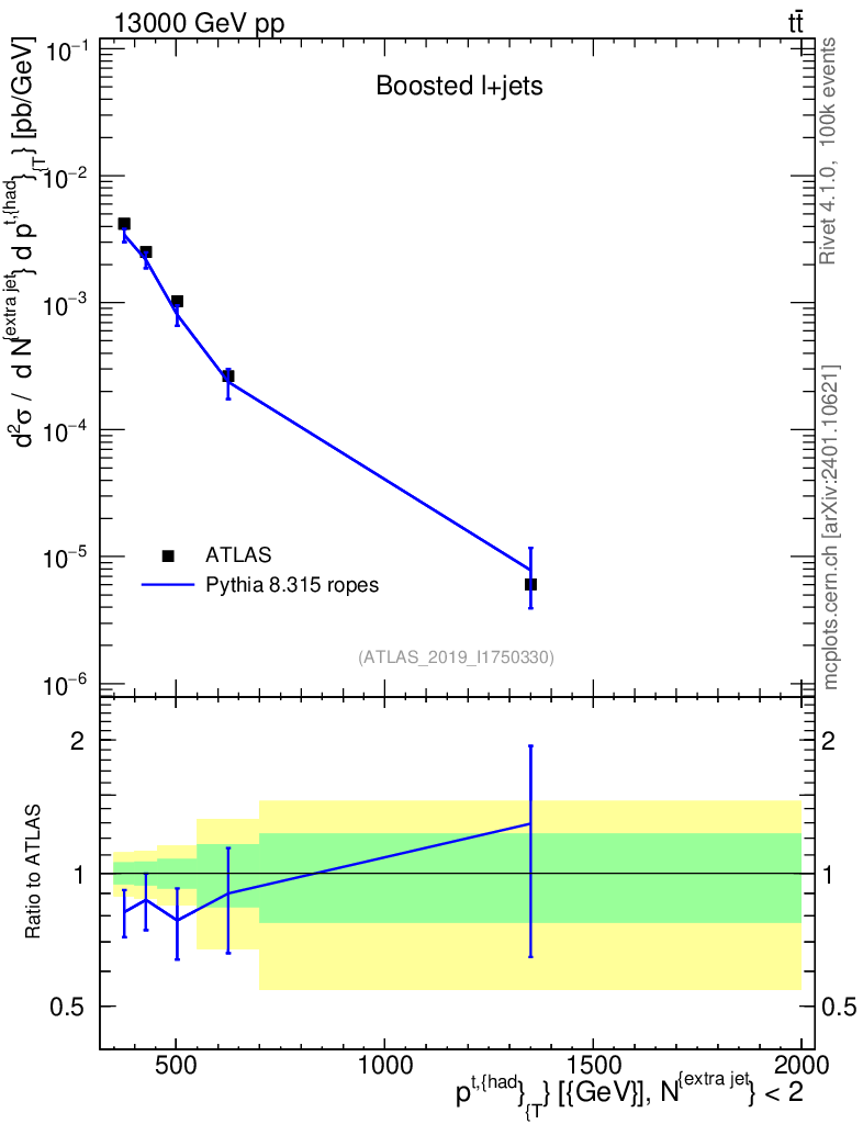 Lines: data, pythia8 8.315 ropes |