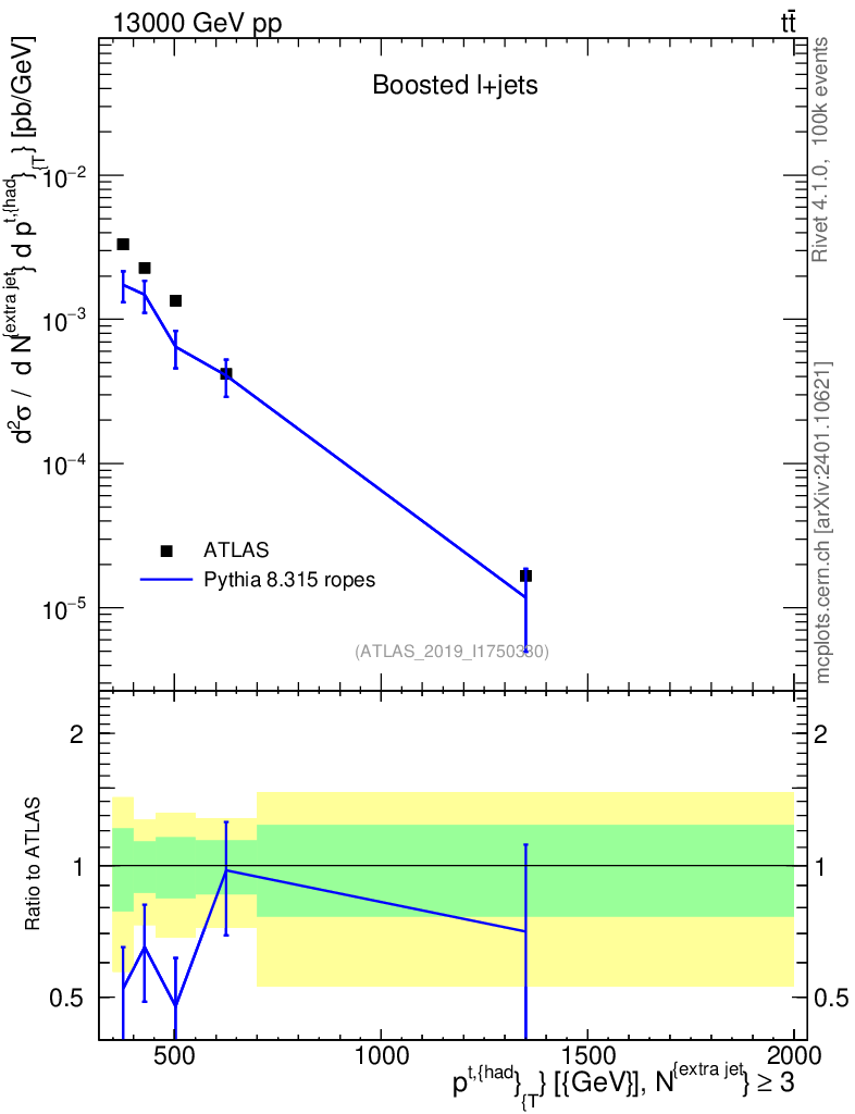 Lines: data, pythia8 8.315 ropes |