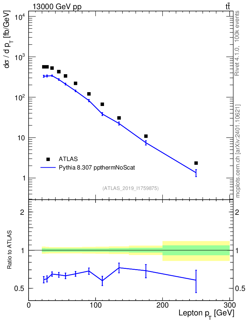 Lines: data, pythia8 8.307 ppthermNoScat |