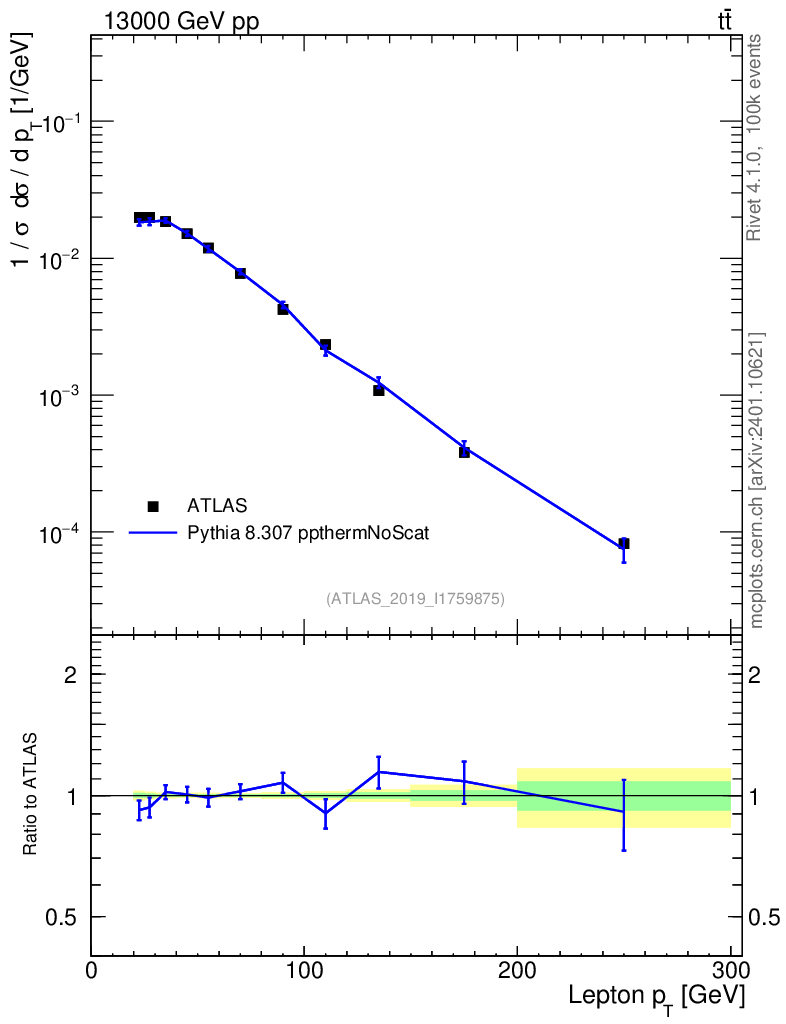 Lines: data, pythia8 8.307 ppthermNoScat |