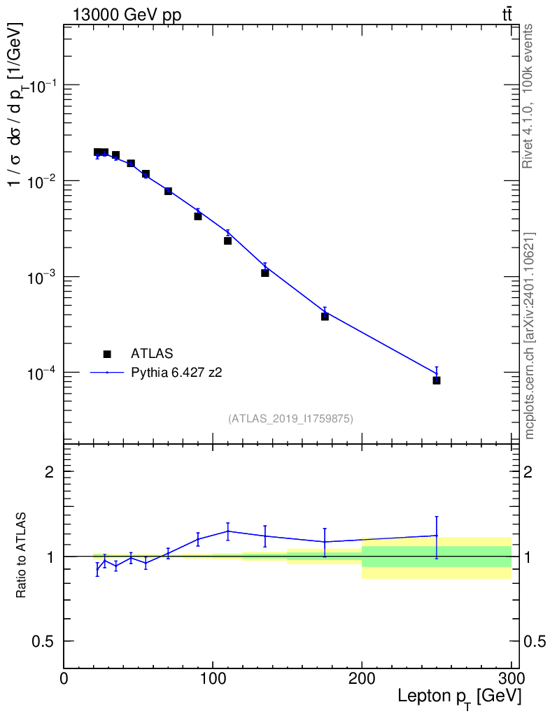 Lines: data, pythia6 6.427 z2 |