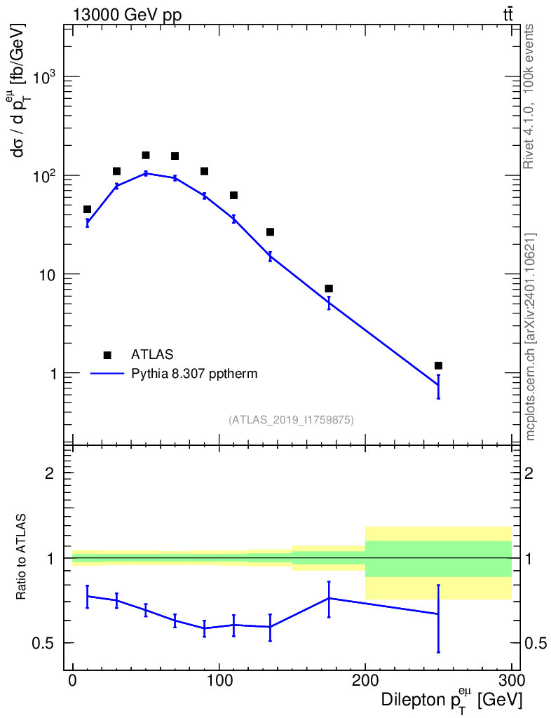 Lines: data, pythia8 8.307 pptherm |
