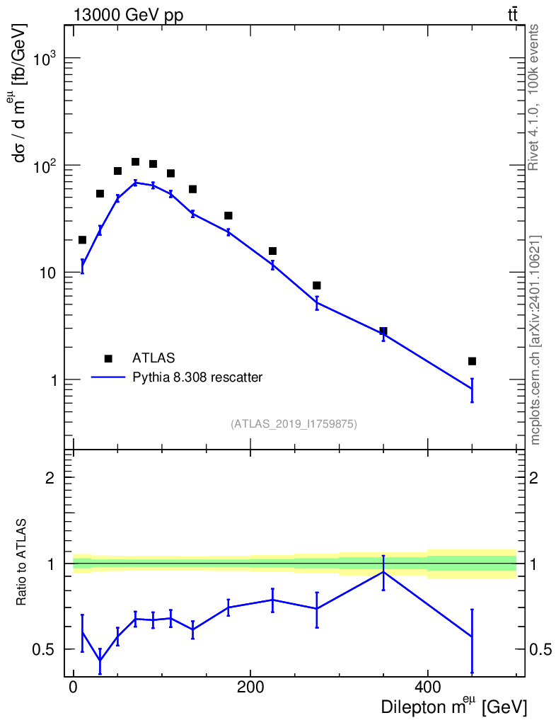 Lines: data, pythia8 8.308 rescatter |
