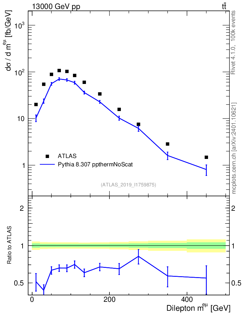 Lines: data, pythia8 8.307 ppthermNoScat |