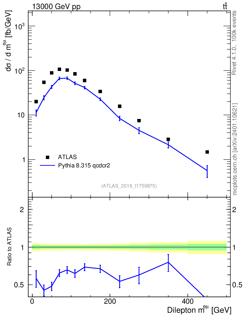 Lines: data, pythia8 8.315 qcdcr2 |