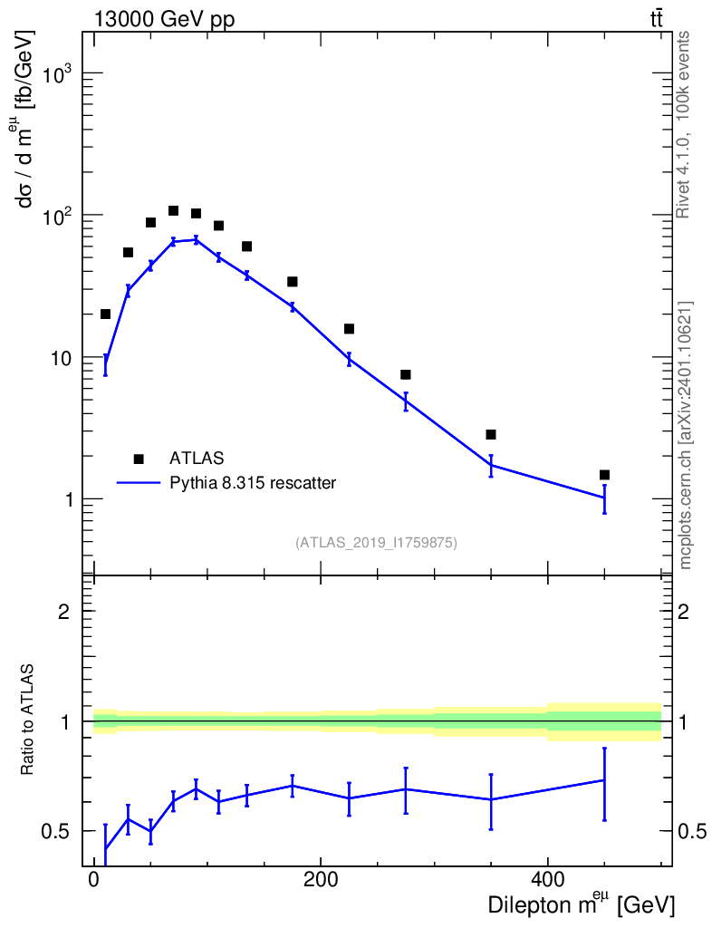 Lines: data, pythia8 8.315 rescatter |