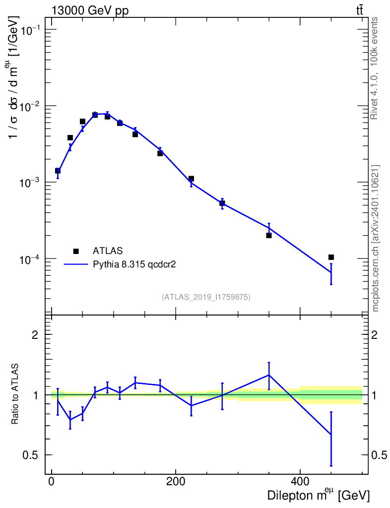 Lines: data, pythia8 8.315 qcdcr2 |