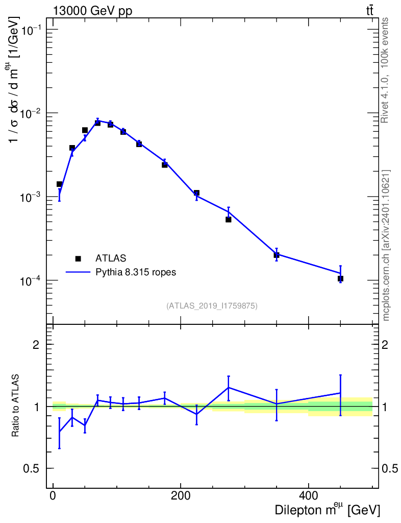 Lines: data, pythia8 8.315 ropes |
