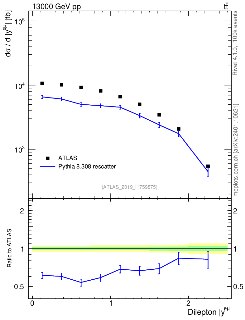 Lines: data, pythia8 8.308 rescatter | compare with other tunes