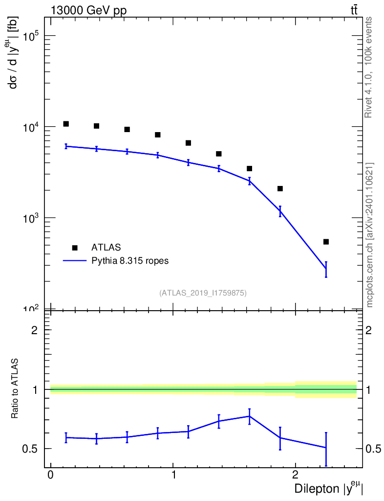 Lines: data, pythia8 8.315 ropes |
