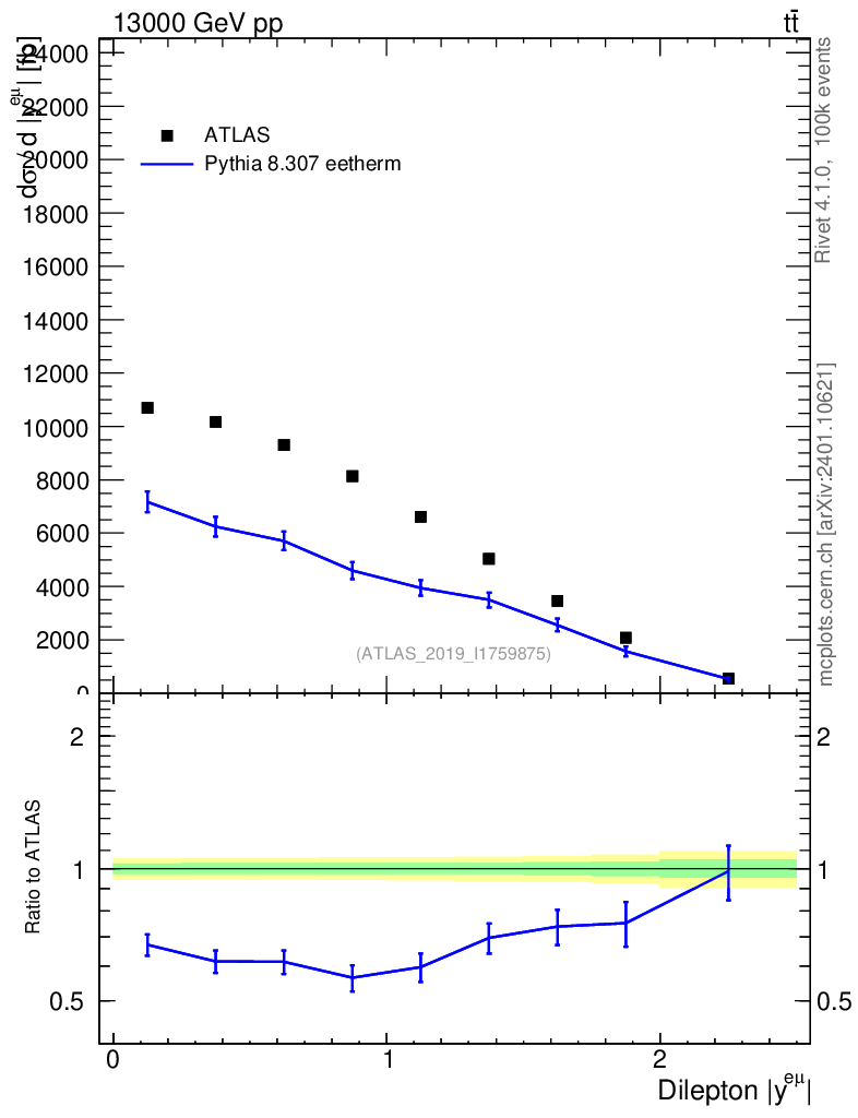 Lines: data, pythia8 8.307 eetherm |