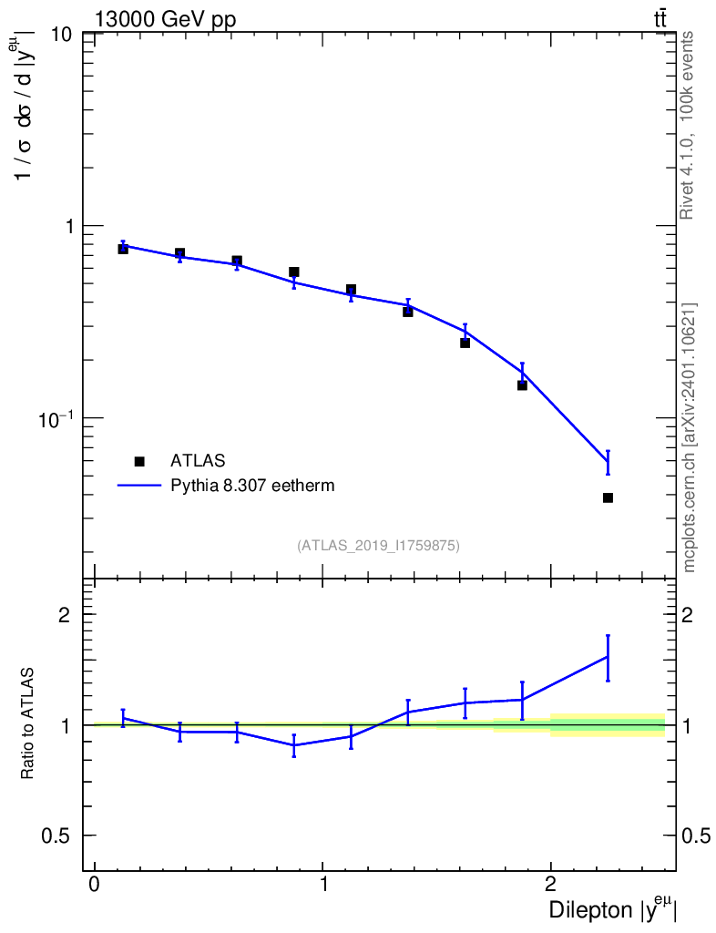 Lines: data, pythia8 8.307 eetherm |