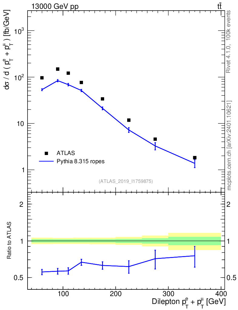 Lines: data, pythia8 8.315 ropes |