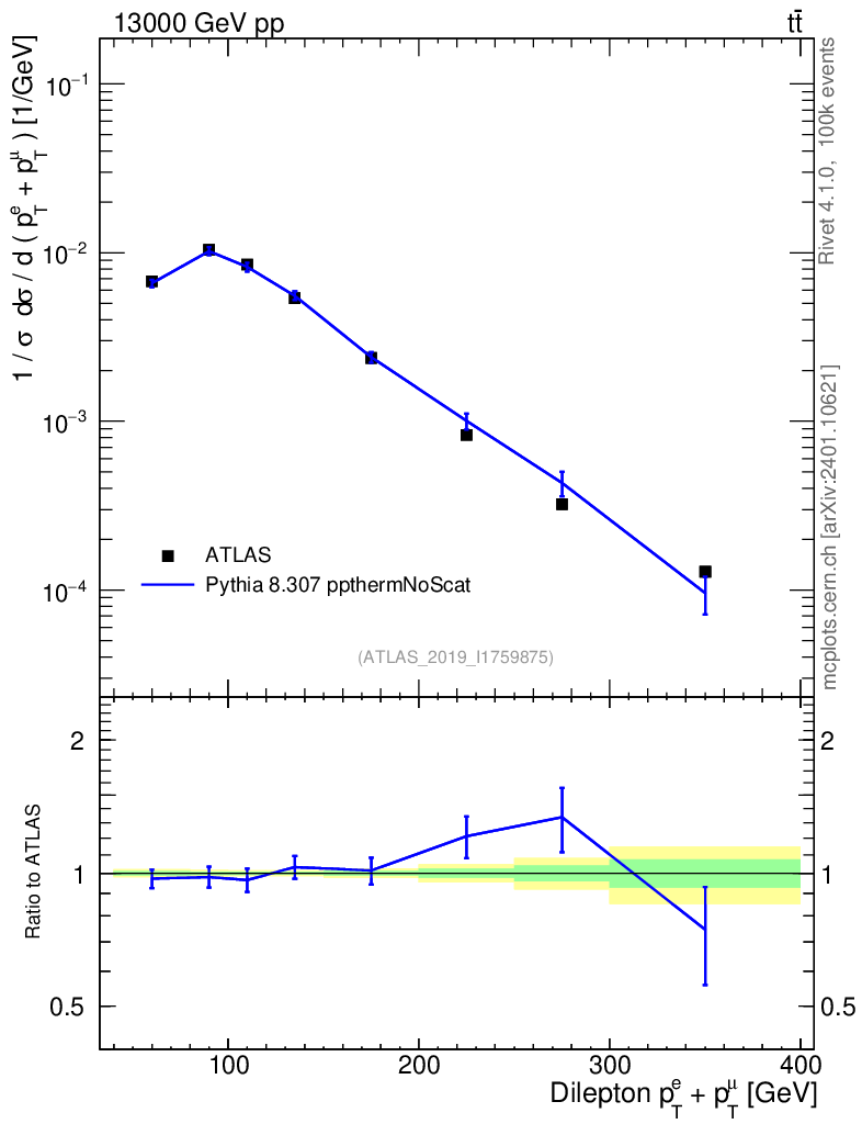 Lines: data, pythia8 8.307 ppthermNoScat |