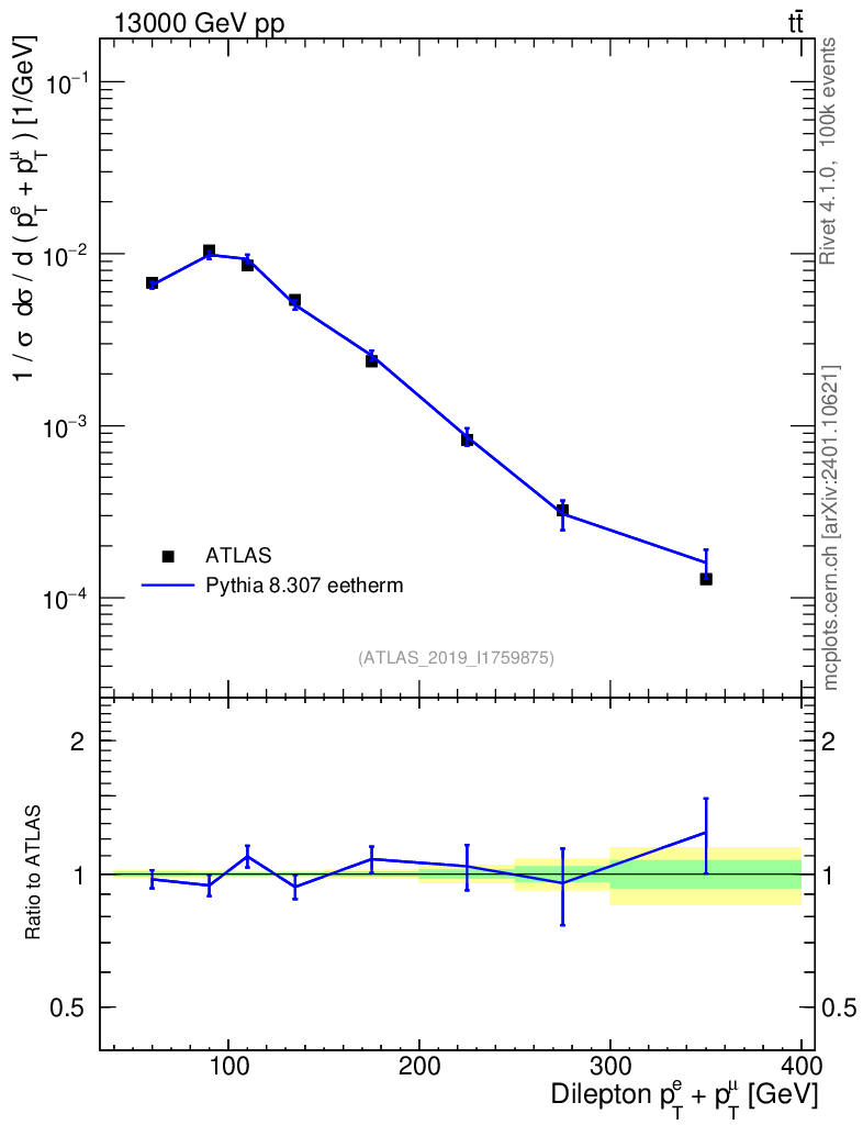 Lines: data, pythia8 8.307 eetherm |