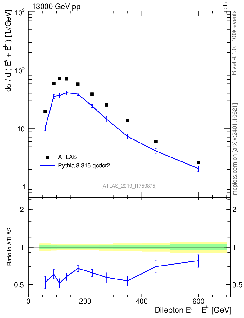 Lines: data, pythia8 8.315 qcdcr2 |