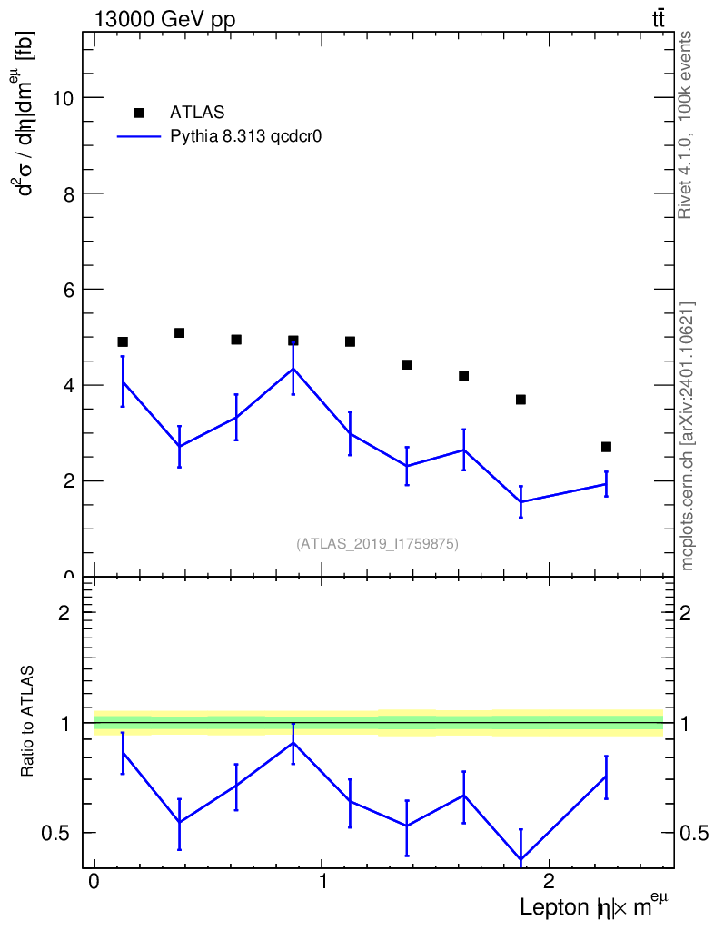 Lines: data, pythia8 8.313 qcdcr0 |