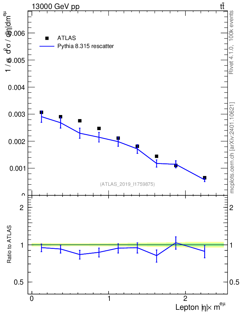 Lines: data, pythia8 8.315 rescatter |